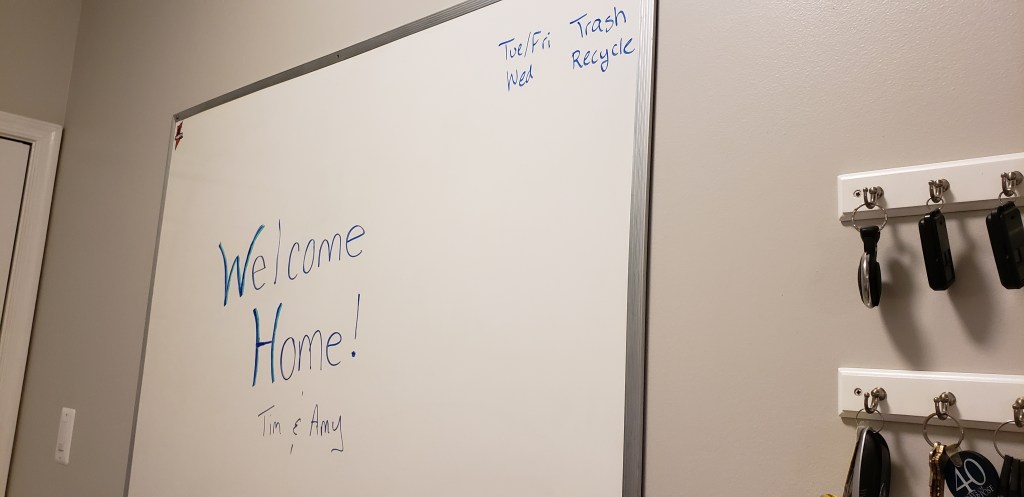 And this morning Jim updated our whiteboard. πŸ™‚ We have been praying for the family that God had selected to own our home. And now we have names for them (and I found him on LinkedIn!)