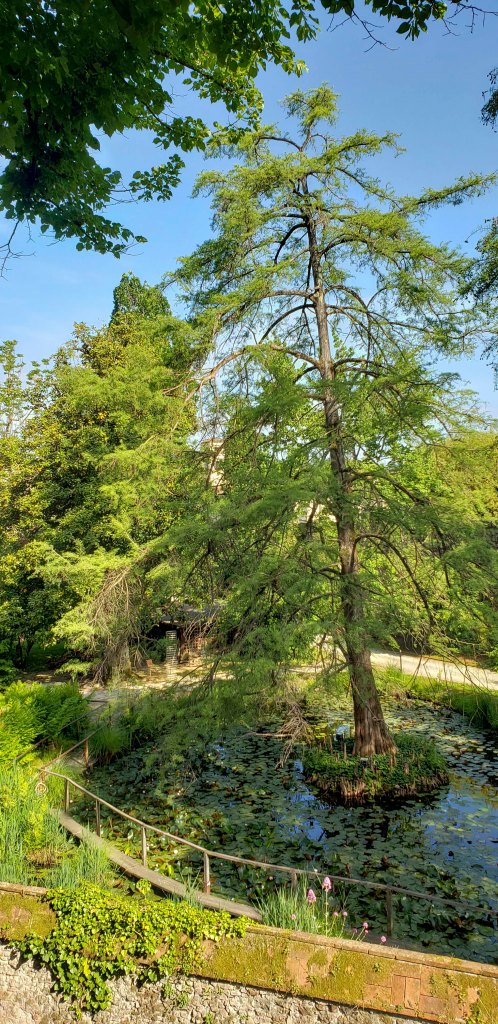 From the wall, we can also see Lucca’s Botantical Garden, including this pond with lots of water lilies. One of their prized specimens is a Cypress tree from Florida. There are about a zillion of these near my son’s house. Nice to see one here!