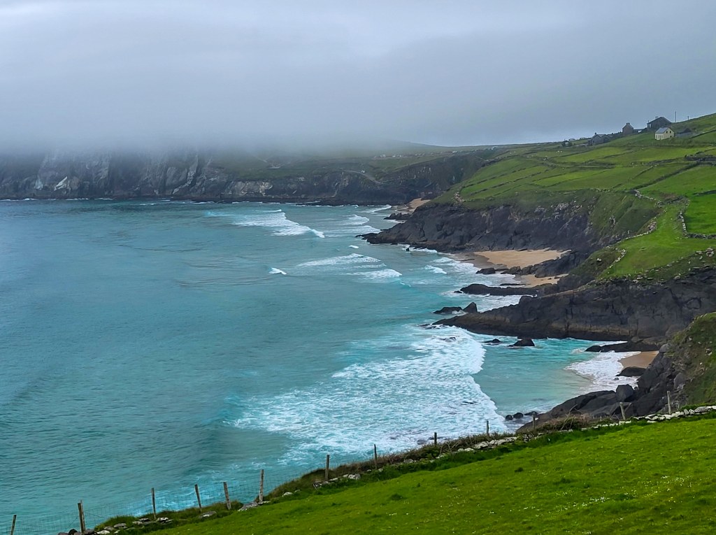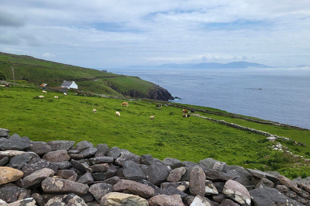 The Dingle Peninsula, on Ireland’s southwest Atlantic coast, is ringed by sandy beaches and craggy cliffs. Inland are rolling hills and mountains populated with interesting historic points, tourist stops, farms, many cows and many many sheep. The Slea Head Loop goes around the peninsula and is only 50 KM / 30 miles but the idea is to stop lots of times at beautiful vistas, ruins from prior civilizations, and everywhere in between. Most people take 3 hours… after 4 hours, we decided to skip the last few stops that I planned. Star Wars – The Last Jedi was partially filmed on this peninsula.
