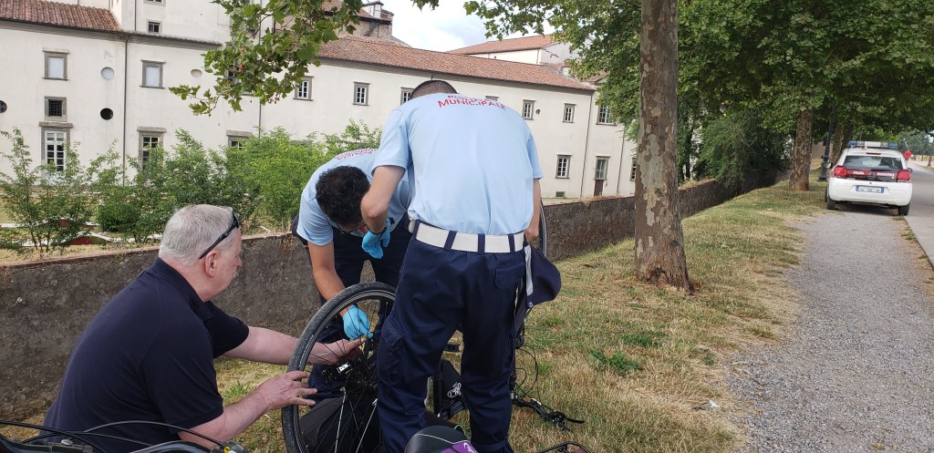 When Jim and I moved to Lucca, we set a goal for ourselves to “become part of the community” which includes learning the language, developing friends (both expats and Italians) and eventually to volunteer in the community. But that evening on our street, while celebrating with “Kneeling Guy,” I truly felt like a member of my community and especially my special neighborhood.